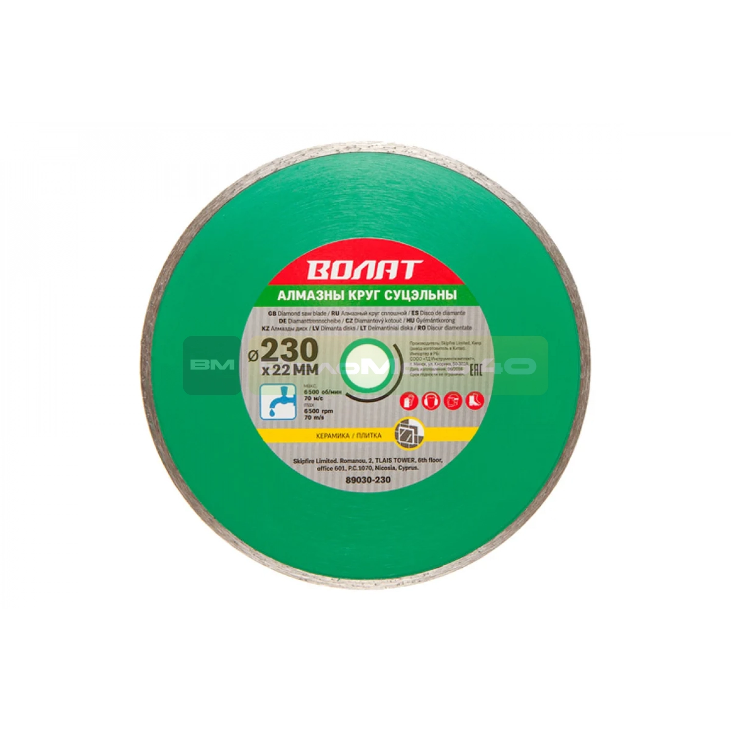 Круг алмазный сплошной по керамике (230х22 мм; мокрая резка) ВОЛАТ 89030-230