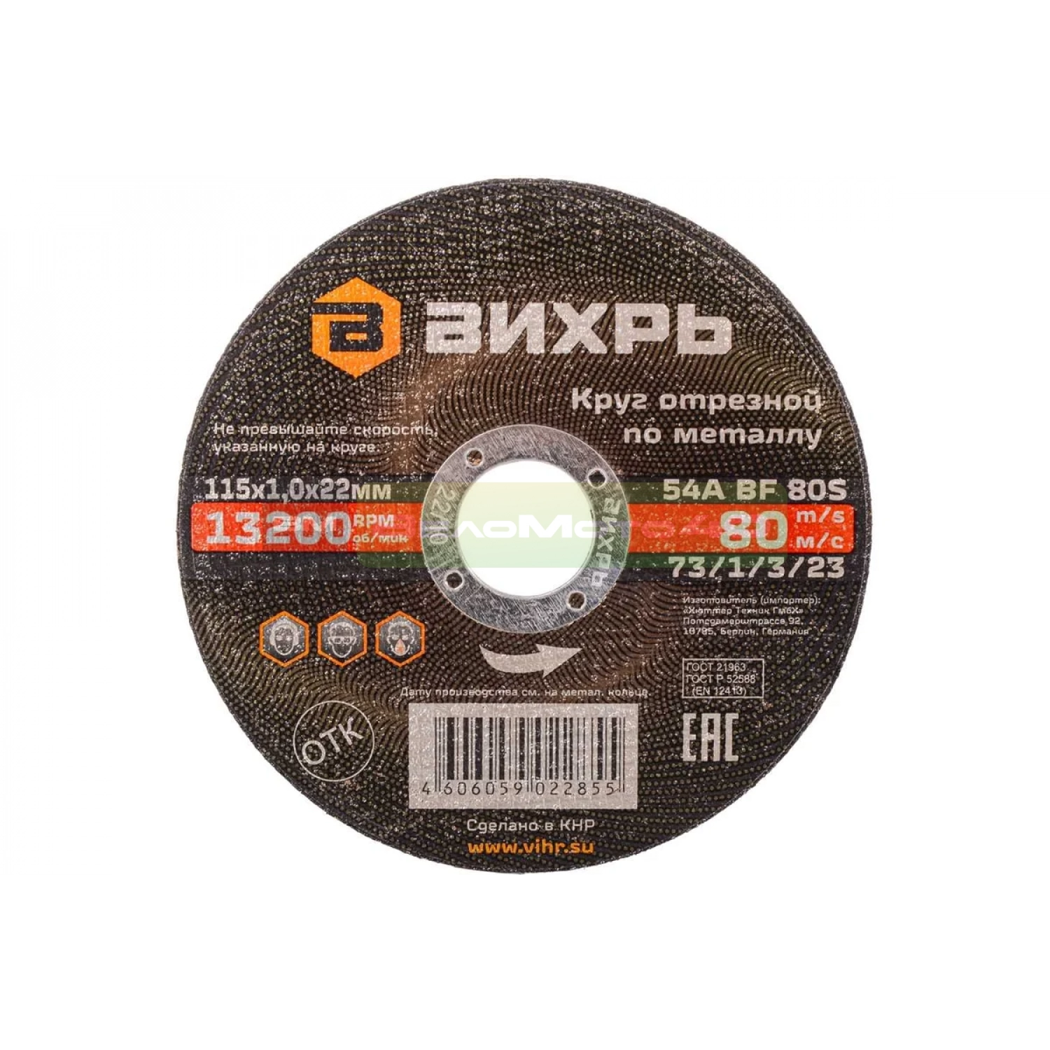 Круг отрезной по металлу (115х22х1 мм) Вихрь 73/1/3/23