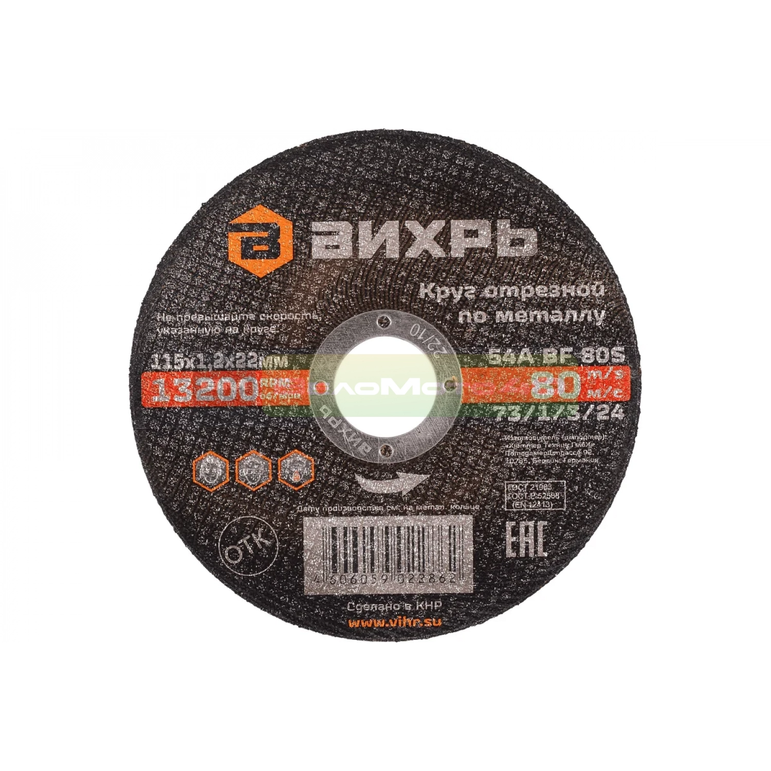 Круг отрезной по металлу (115х22х1.2 мм) Вихрь 73/1/3/24