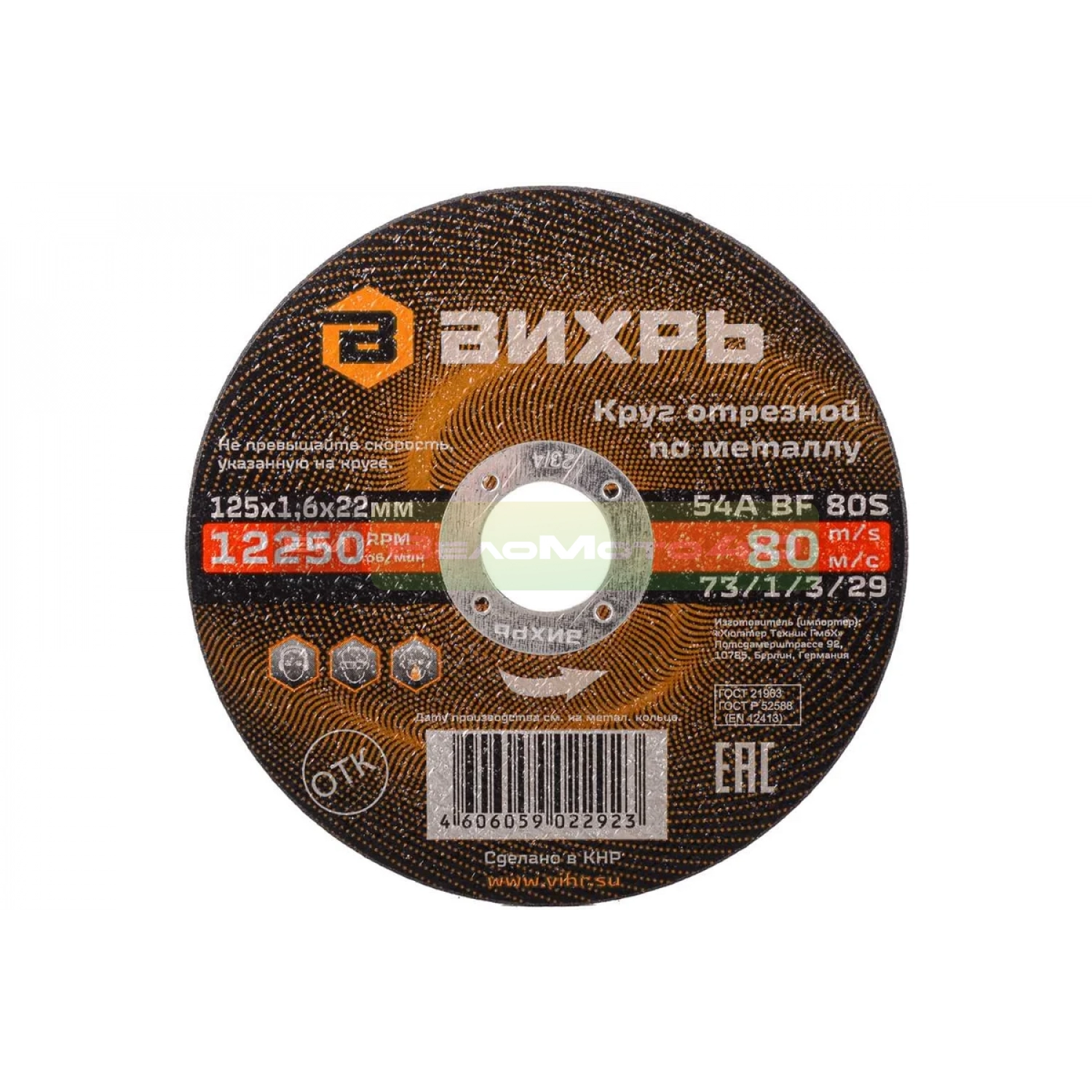 Круг отрезной по металлу (125х22х1.6 мм) Вихрь 73/1/3/29