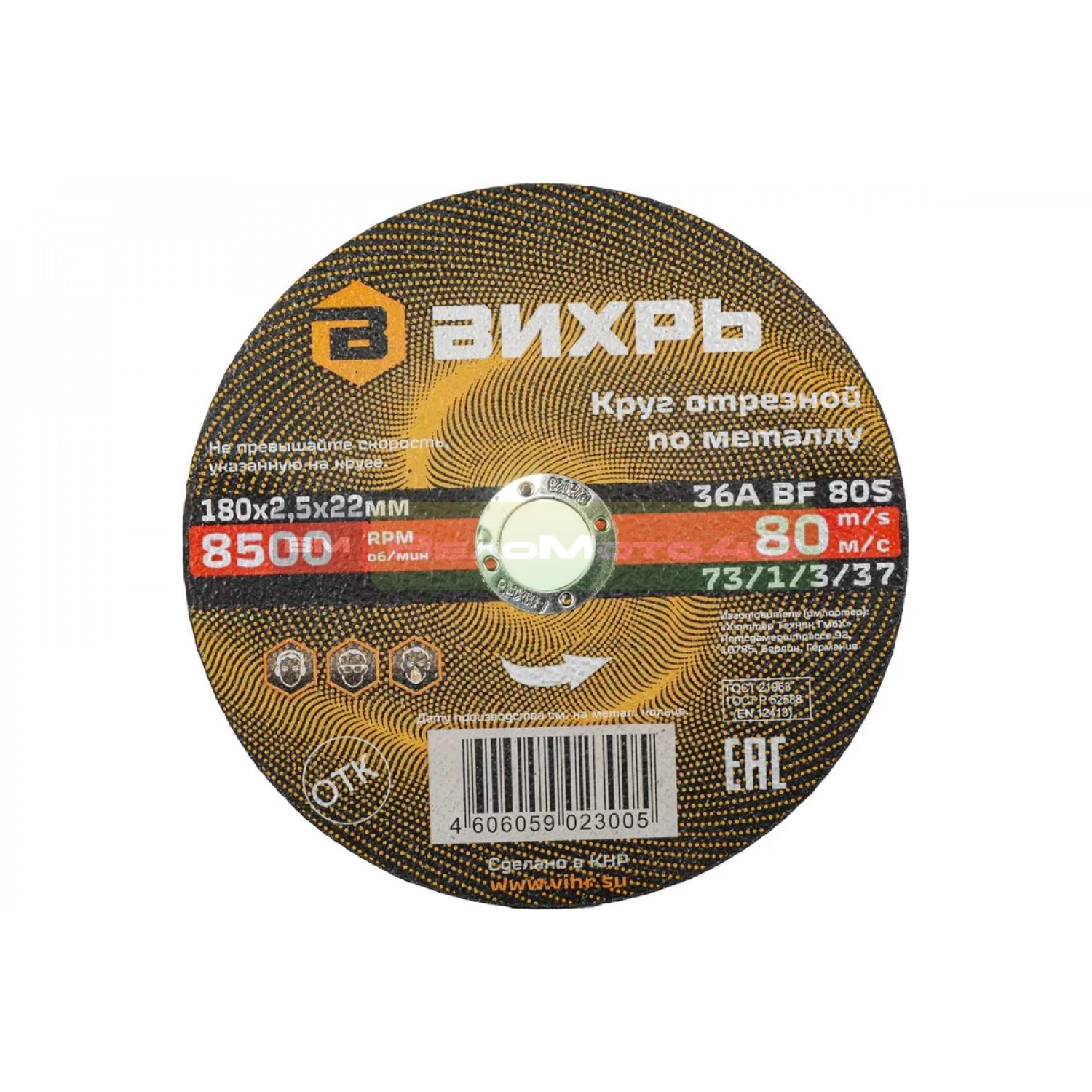 Круг отрезной по металлу (180х22х2.5 мм) Вихрь 73/1/3/37