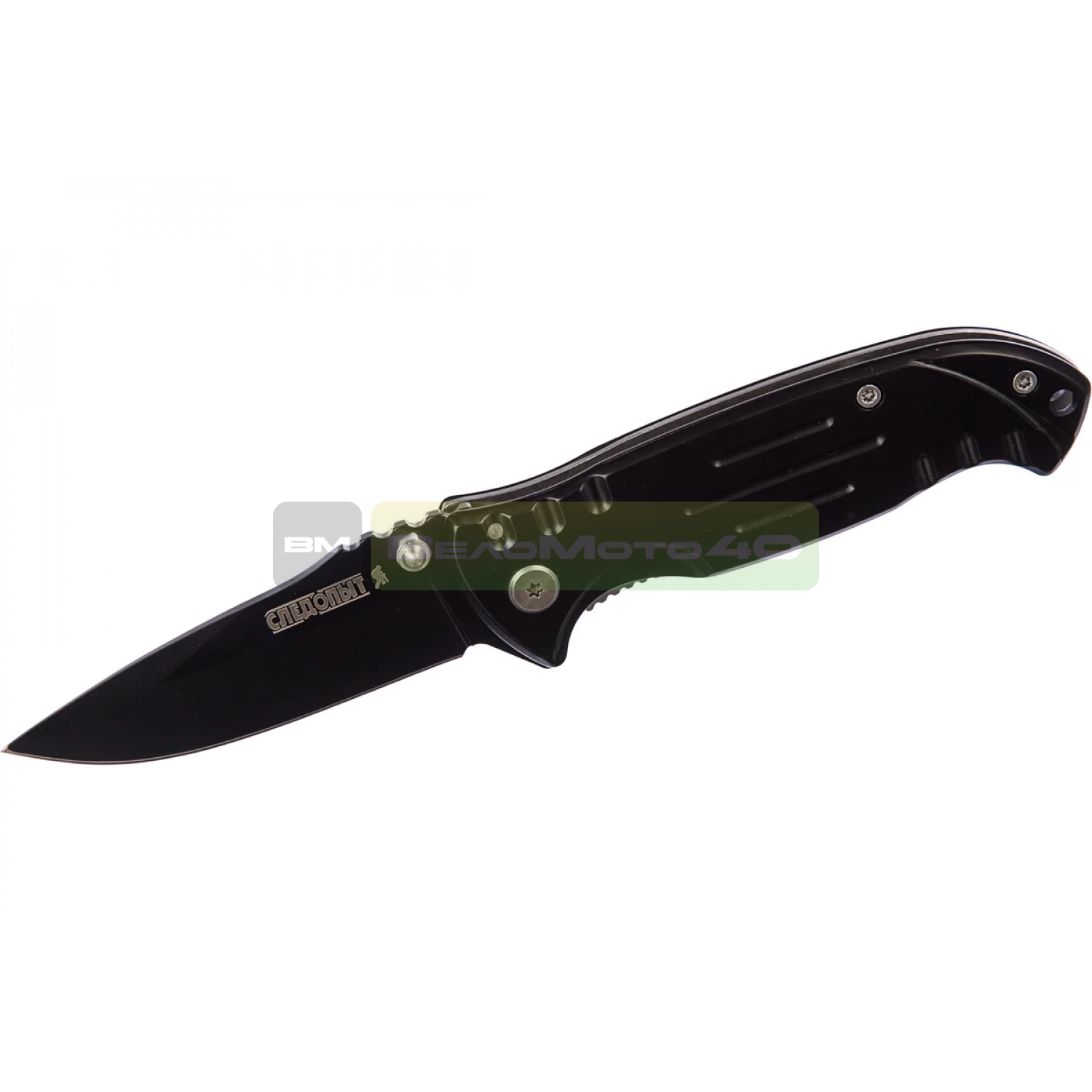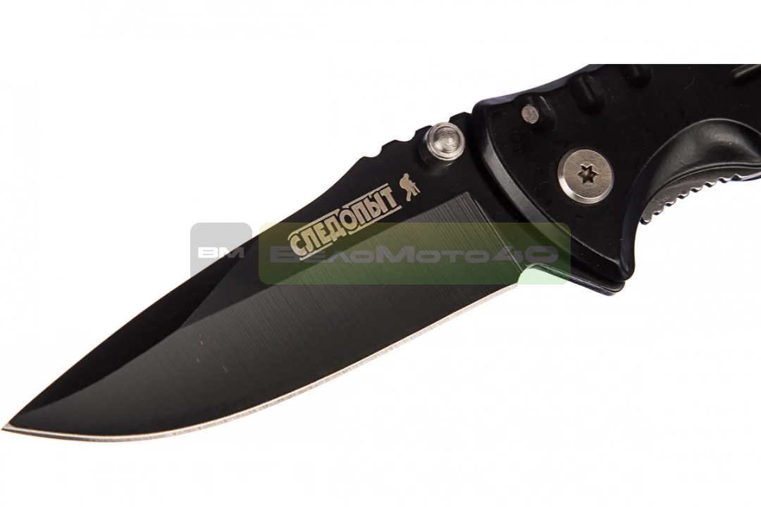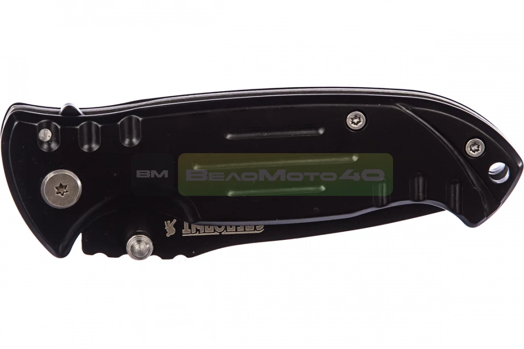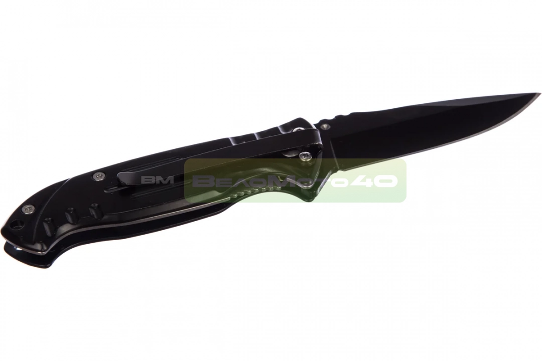 Металлическая рукоять ножа оснащена зажимом-клипсой для крепления к ремню. Складная конструкция обеспечивает компактное хранение.