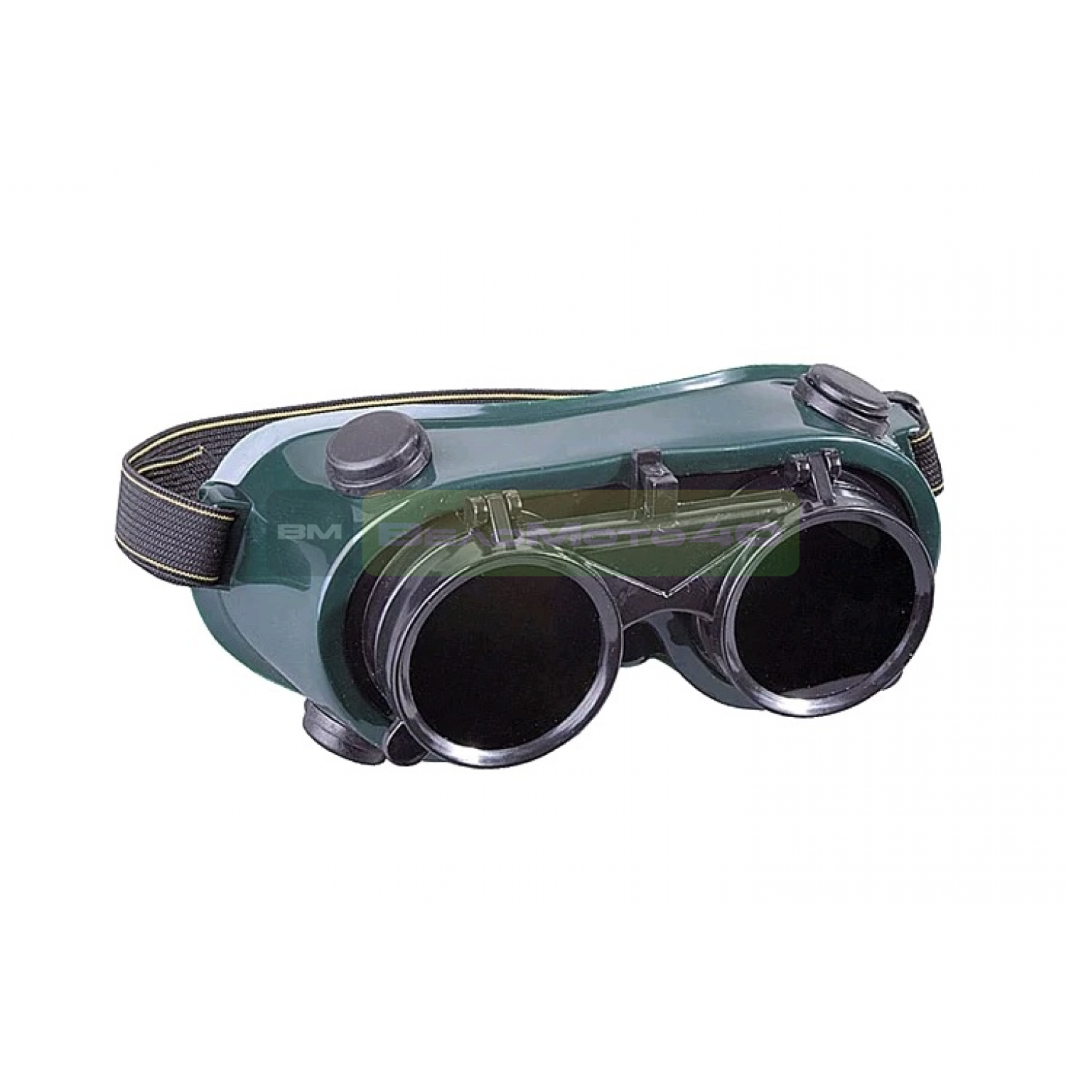 Затемненные светофильтры посажены на откидную рамку, что позволяет увидеть результат работы, не снимая очков.