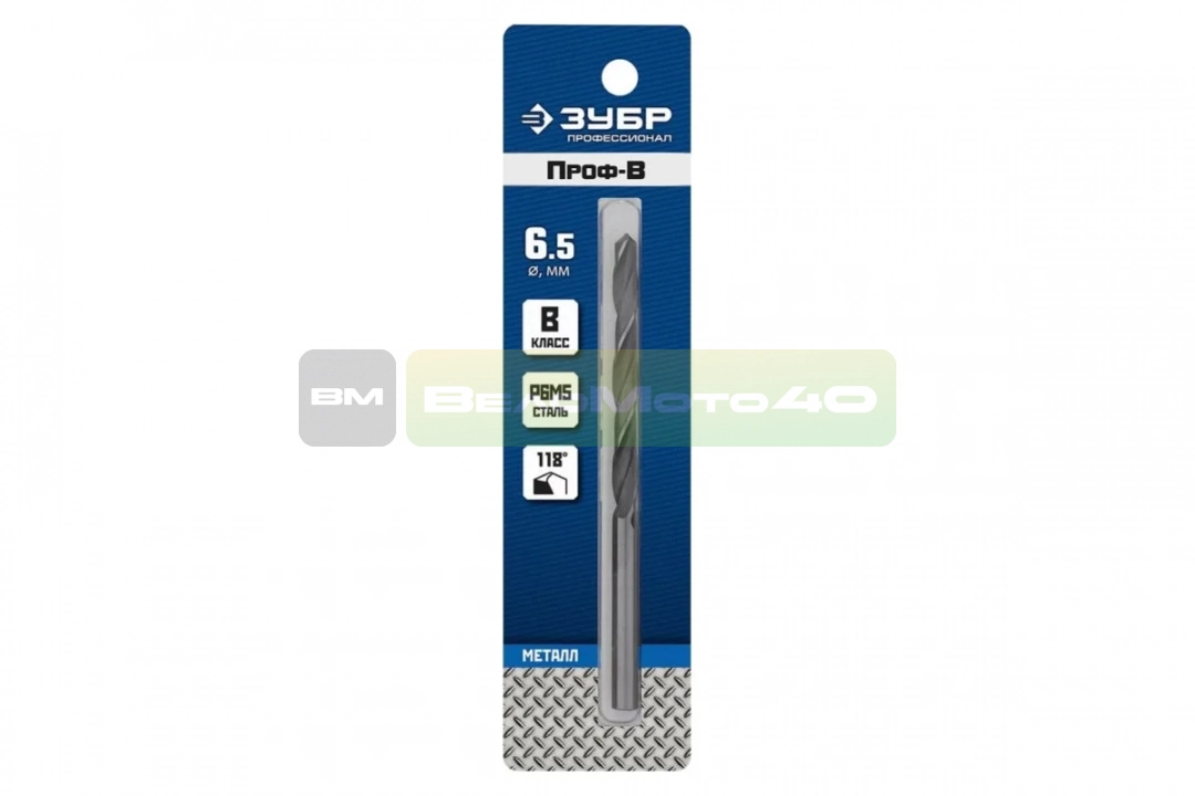 Сверло по металлу ЗУБР Профессионал сталь Р6М5, 6.5х101 мм 29621-6.5